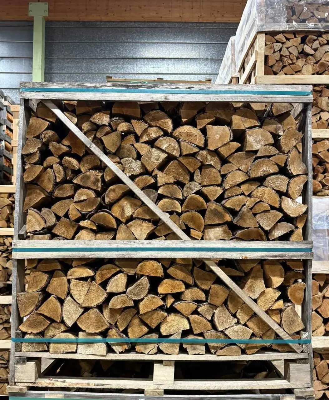 Brændetårnet fylder ca. 1,0 m3. Brændet er tæt stablet som brændetårn på engangspalle (udvendige mål) og savet i omkring 25 cm og kløvet.
